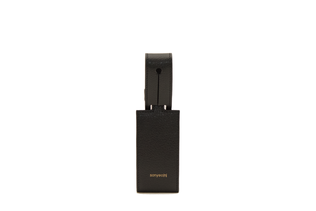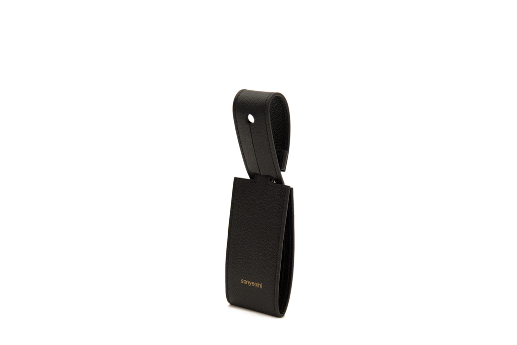 Axel is luggage tag fully constructed in chèvre chagrin using high-end traditional leather craft techniques. ID window is constructed with vinyl and the interior is lined with Japanese high quality non-fabric.
