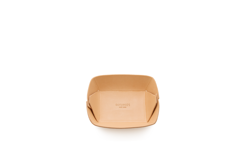 “Jongji” mini is a small plate to assist you to keep your little items together and organized. It is inspired by paper food package and fully constructed in Italian vegetable tanned cowhide using high-end traditional leather craft techniques. Jongji Mini keeps your point cards you don’t carry everyday or the business cards you can not lose together.