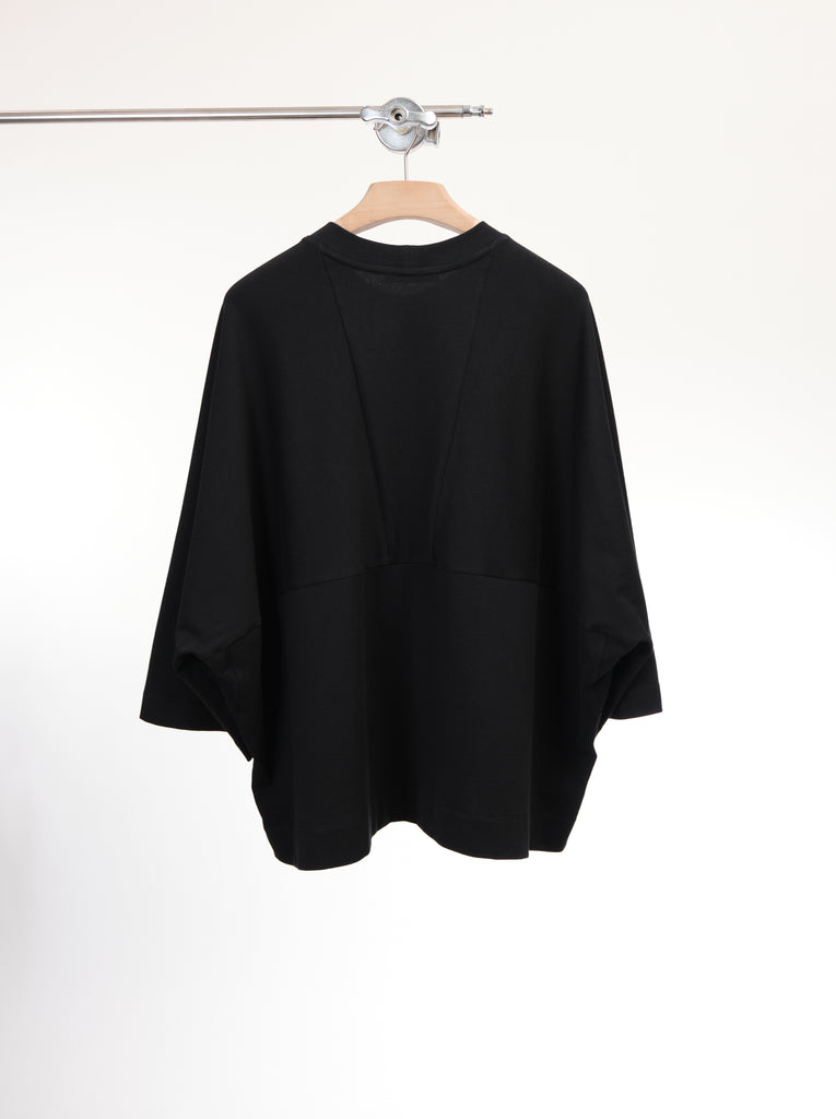 The minimalistic design of this item focused on the beauty of shape and balance. The right size funnel neck added very modern looks. The body is fully constructed in 227GSM medium weight 100% cotton knit from Japan. It's nicely soft in touch would give a comforting.