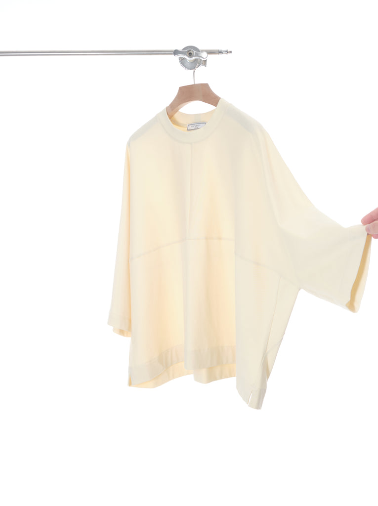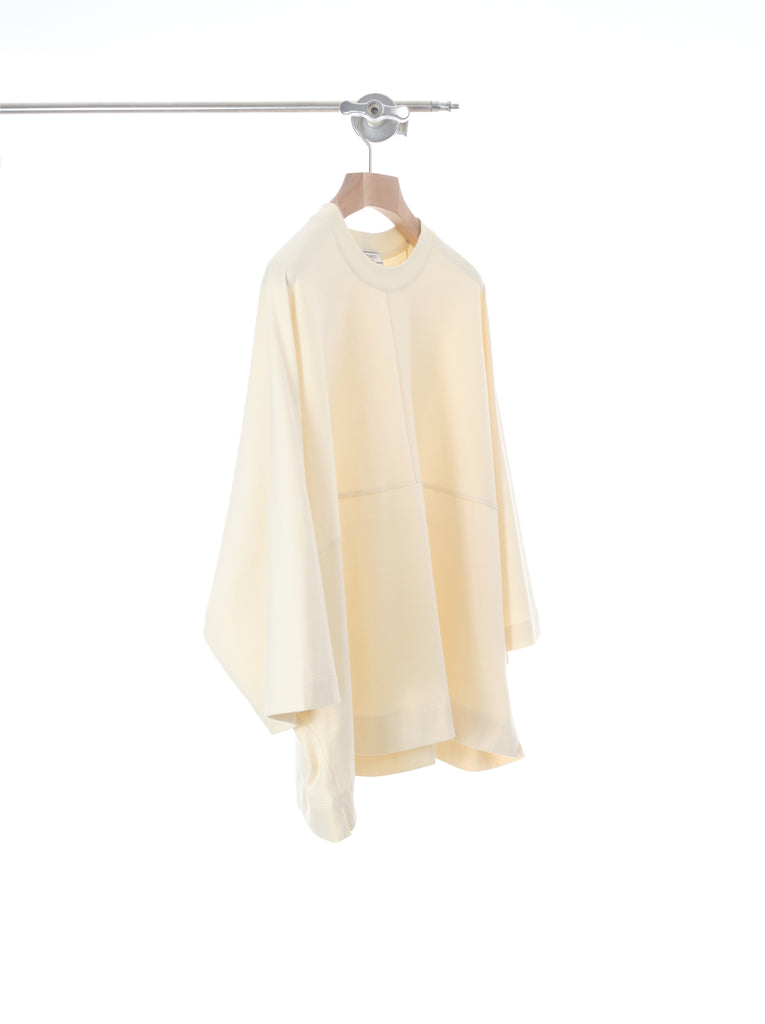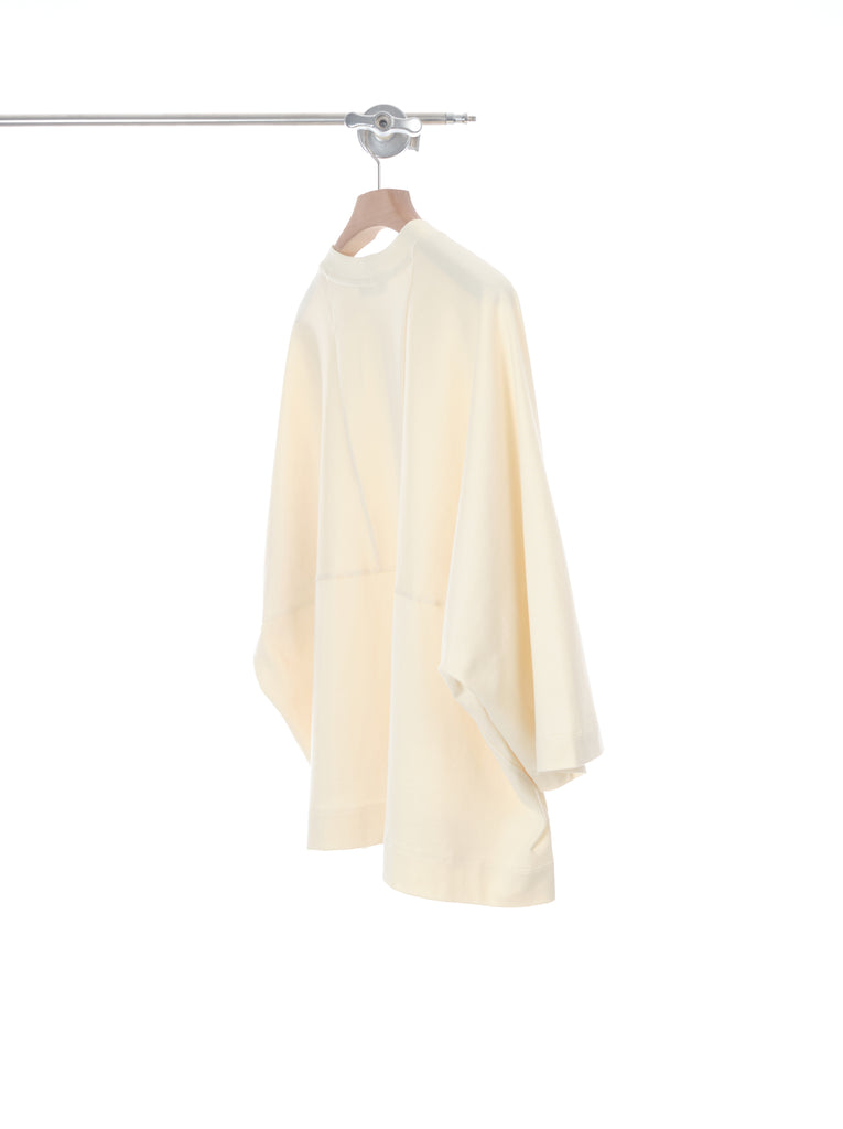 The minimalistic design of this item focused on the beauty of shape and balance. The right size funnel neck added very modern looks. The body is fully constructed in 227GSM medium weight 100% cotton knit from Japan. It's nicely soft in touch would give a comforting.