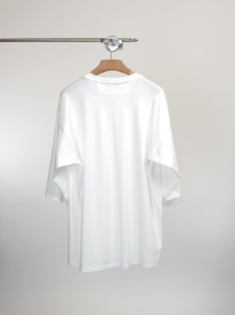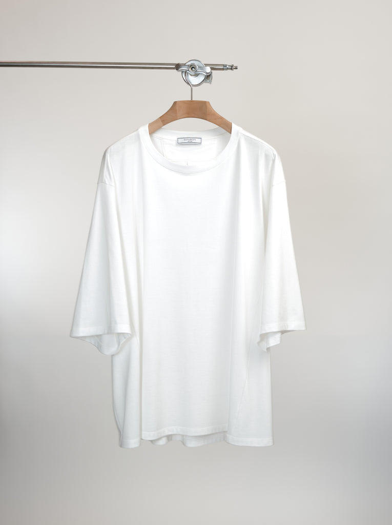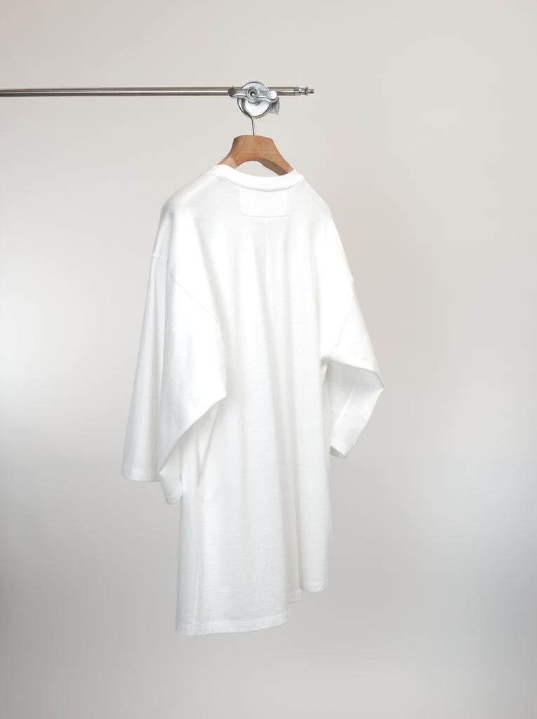 Inspired from a traditional korean man's outer "Jeogori" shape and detail. Exaggerated boxy silhouette Tee shirt in a medium light weight 100% cotton knit from Japan.